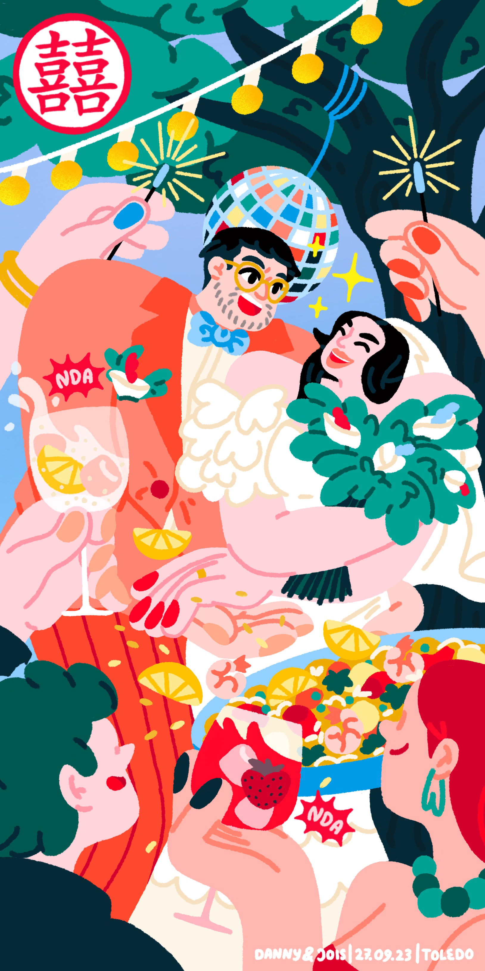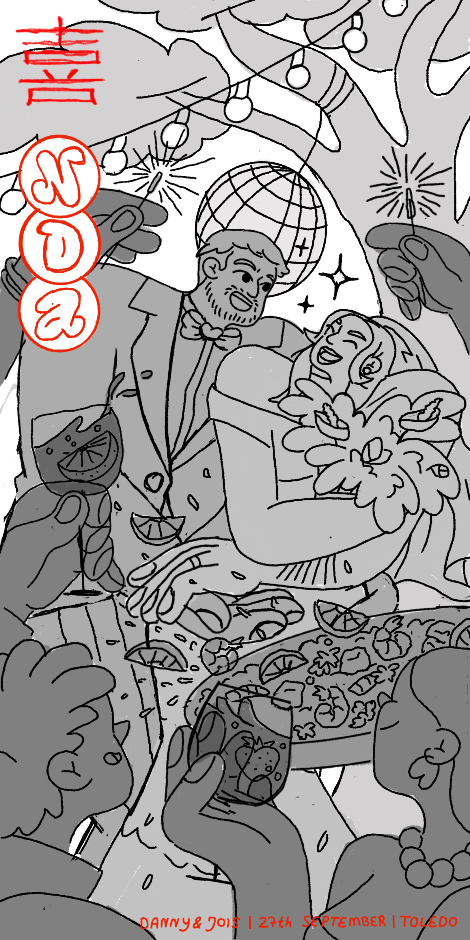 I had the wonderful pleasure of illustrating a wedding artwork as a gift for the wedding guests of Mr. and Mrs. Lee.